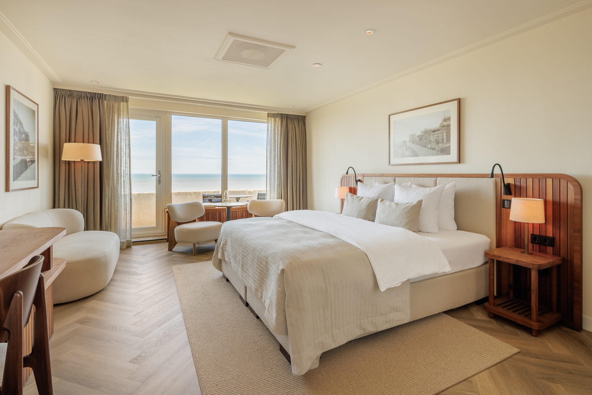 Ontspan in de Historic Large Zeezijde Kamer, een ruim toevluchtsoord met een warme inrichting en prachtig uitzicht op de oceaan.